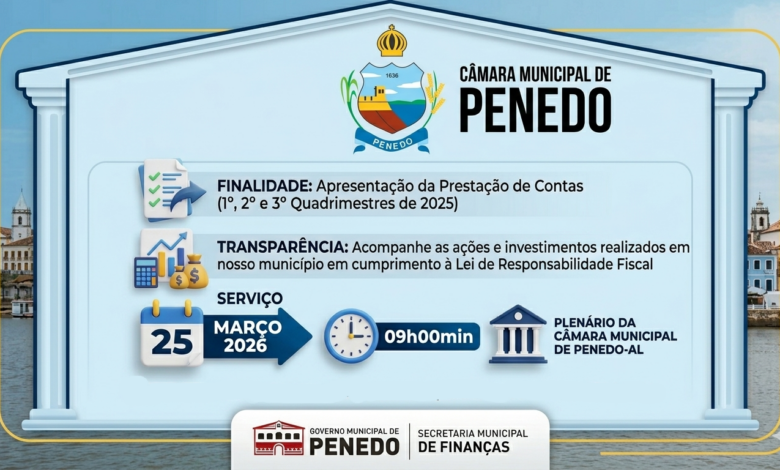 A Secretaria Municipal de Penedo realiza Audiência Pública para Prestação de Contas do Exercício de 2025.